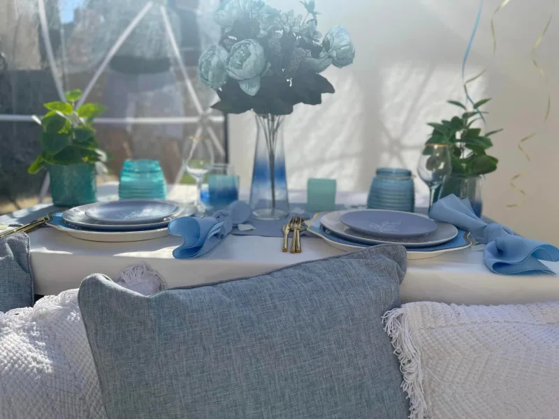 Create a memorable evening for two with a Romantic Date Night igloo pod setup. Decorate the space with soft, warm lighting, rose petals, and plush seating. A flower wall featuring roses or peonies can serve as a stunning backdrop. Offer a gourmet dinner for two, complete with candles and soft music, to make this night truly special. This theme is perfect for anniversaries, Valentine’s Day, or any occasion where you want to spoil your partner with an intimate, beautiful setting.