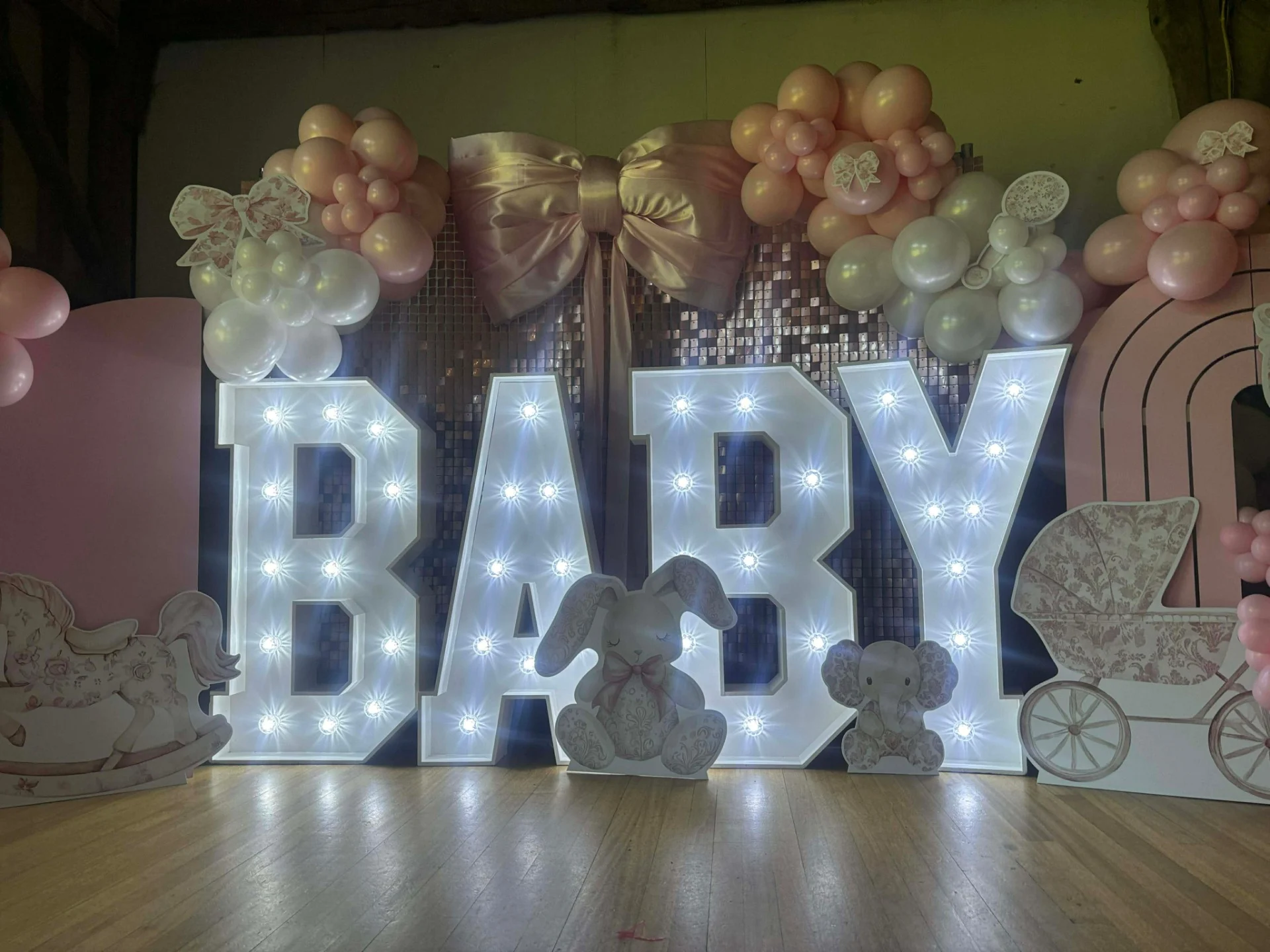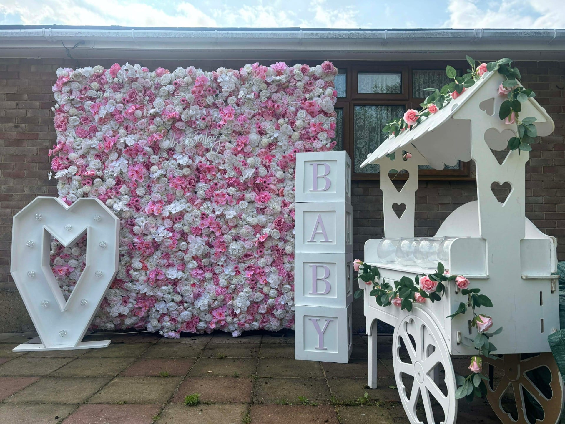 The most popular items for these events are, Flower walls, Draped Flower Walls, Personalised welcome signs, Floral Hoops, Balloon Hoops, Baby Blocks and our Oh Baby / Baby Led letters.